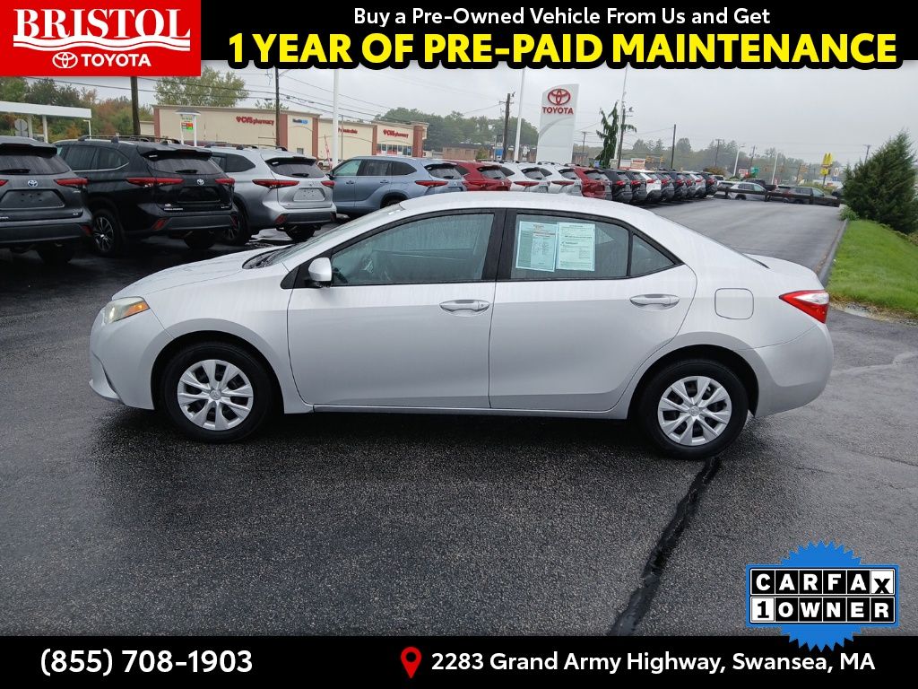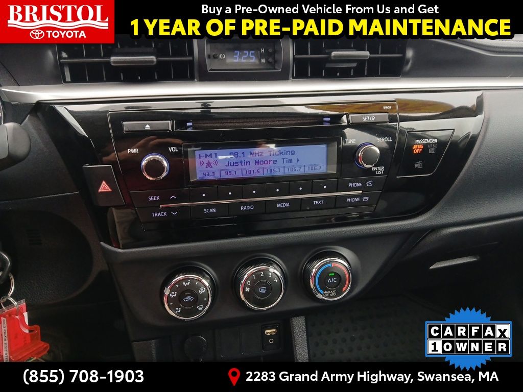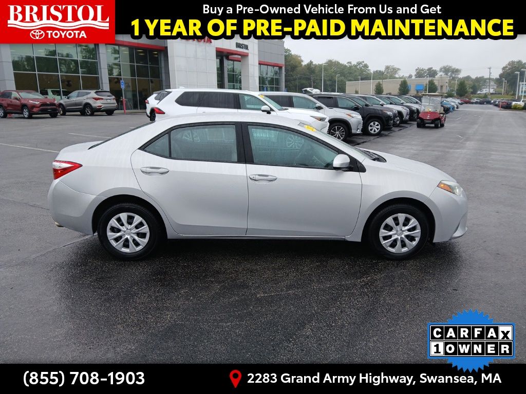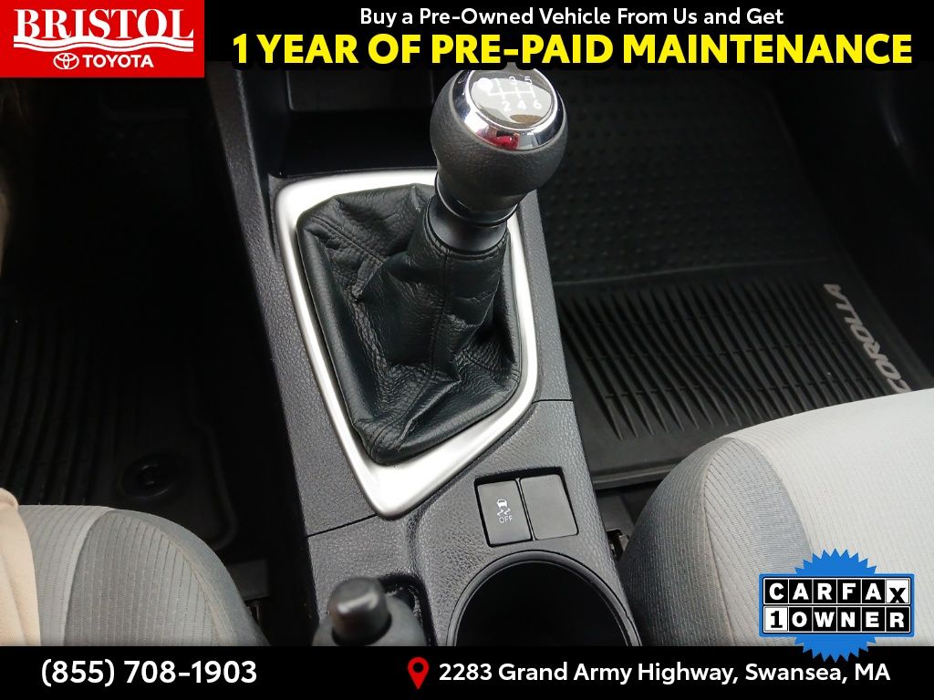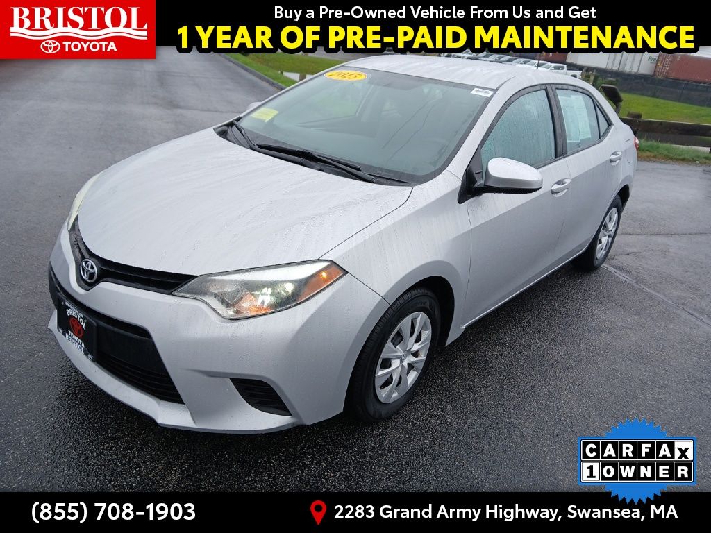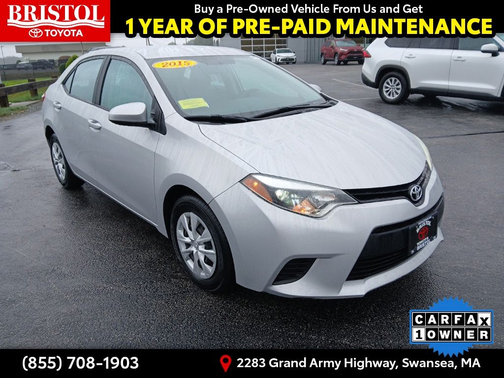 Odometer is 51623 miles below market average! CARFAX One-Owner. Clean CARFAX.Bluetooth, Hands-Free, AM/FM/CD Player, Illuminated entry, Power door mirrors, Steering wheel mounted audio controls.Please call ahead today to make sure this vehicle is in stock! We're here to answer any questions. You can be confident that every used car we sell will be trouble free and reliable! Because if it's not, we won't sell it. Bristol Toyota is the only dealership in New England to have won Toyota's President's Award for over 35 consecutive years. Bristol Toyota..."Where friends send friends, Every Day!"Classic Silver 2015 Toyota Corolla L 4D Sedan FWD 6-Speed Manual 1.8L I4 DOHC Dual VVT-i 28/37 City/Highway MPGAwards: * 2015 KBB.com 10 Best UberX Candidates * 2015 KBB.com 5-Year Cost to Own Awards * 2015 KBB.com 10 Tech-Savviest Cars Under $20,000