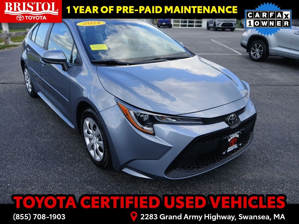 Odometer is 51254 miles below market average! CARFAX One-Owner. Clean CARFAX.Toyota Gold Certified Details: * Roadside Assistance * Powertrain Limited Warranty: 84 Month/100,000 Mile (whichever comes first) from TCUV purchase date * Vehicle History * Limited Warranty: 12 Month/12,000 Mile Limited Comprehensive Warranty: 12 Month/12,000 Mile (whichever comes first) from certified purchase date * 160 Point Inspection * Transferable Warranty * Roadside Assistance for 7 Year / 100,000 Mile. Standard New-Car Financing Rates Available. Warranty honored at over 1,400 Toyota dealers in the continental U.S. & Canada. Trade-ins accepted. Trouble-free handling of your transaction, including DMV paperwork * Warranty Deductible: $0Please call ahead today to make sure this vehicle is in stock! We're here to answer any questions. You can be confident that every used car we sell will be trouble free and reliable! Because if it's not, we won't sell it. Bristol Toyota is the only dealership in New England to have won Toyota's President's Award for over 35 consecutive years. Bristol Toyota..."Where friends send friends, Every Day!"Celestite 2021 Toyota Corolla LE 4D Sedan FWD CVT 1.8L I4 DOHC 16V 30/38 City/Highway MPG