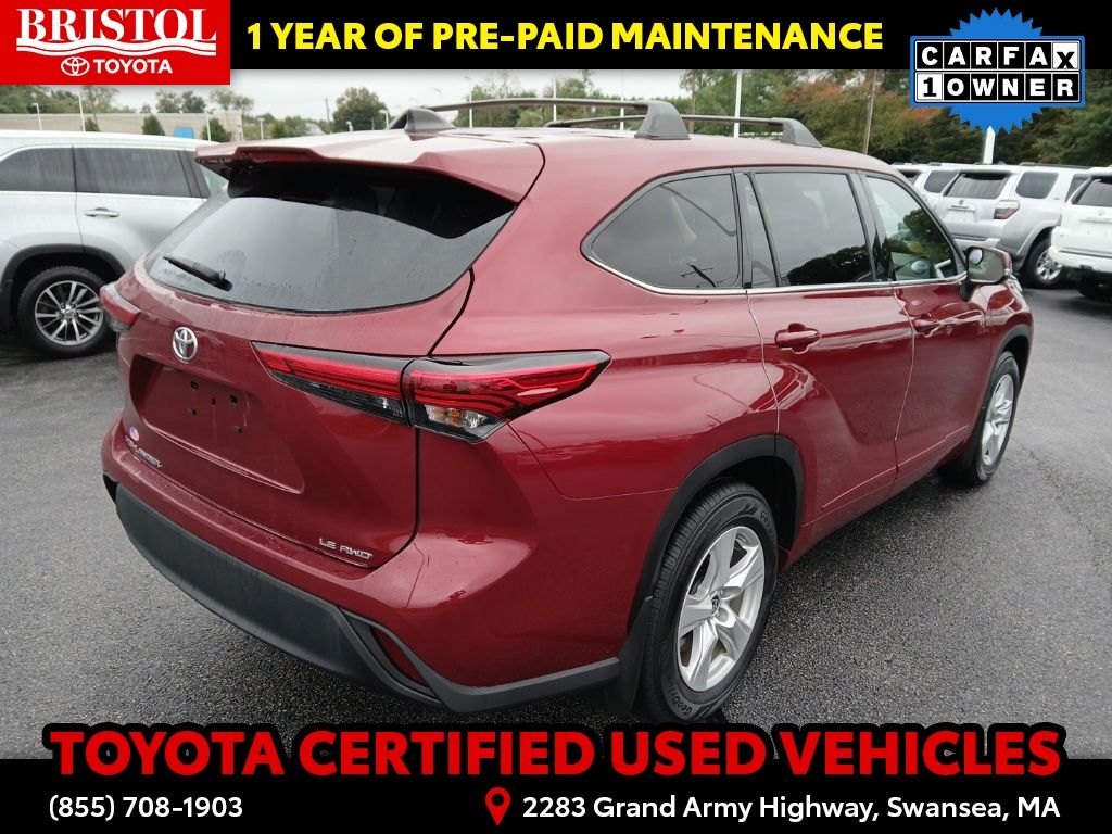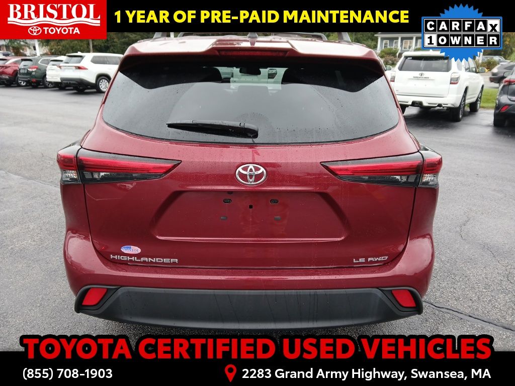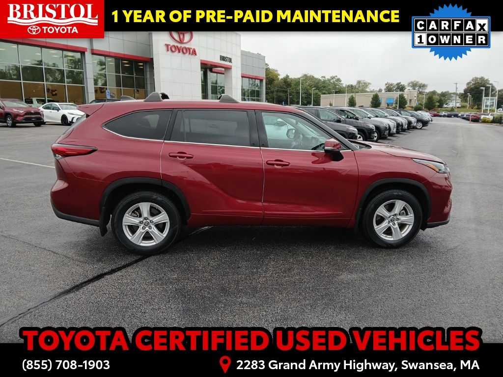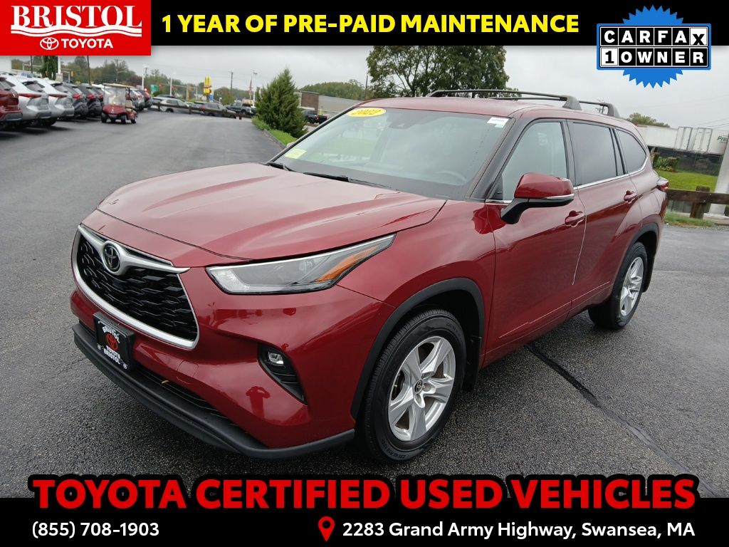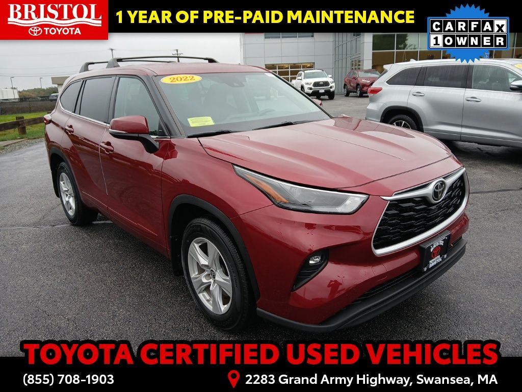 TOYOTA CERTIFIED 7 Year/100,000 Mile Warranty!! CARFAX One-Owner. Clean CARFAX.Backup Camera, Bluetooth, Hands-Free, 3rd row seats: split-bench, Alloy wheels, Apple CarPlay/Android Auto, Exterior Parking Camera Rear, Illuminated entry, Power driver seat, Power Liftgate, Radio: Audio Plus, Steering wheel mounted audio controls.Toyota Silver Certified Details: * SILVER CERTIFIED Eligibility: Vehicles up to 10 Model Years Old & Between 60,000-125,000 Miles on Odometer; Outside Gold Eligibility Parameters, Limited Powertrain Warranty: 12-Month/12,000-Mile(2), 24-Hour Roadside Assistance: 12-Month/12,000-Mile(3), Extended Warranty Coverage (items 2 and 3 above) Transferable at No Cost For Added Resale Value, Quality Assurance Inspection: 136-Point Minimum, Free CARFAX Vehicle History Report, Warranty Honored at Over 1,400 Toyota Dealers in the Continental U.S. and Canada, Trade-Ins Accepted, Trouble-free Handling of Your Transaction; Including DMV PaperworkPlease call ahead today to make sure this vehicle is in stock! We're here to answer any questions. You can be confident that every used car we sell will be trouble free and reliable! Because if it's not, we won't sell it. Bristol Toyota is the only dealership in New England to have won Toyota's President's Award for over 35 consecutive years. Bristol Toyota..."Where friends send friends, Every Day!"Ruby Flare Pearl 2022 Toyota Highlander LE 4D Sport Utility AWD 8-Speed Automatic 3.5L V6 DOHC 20/27 City/Highway MPG