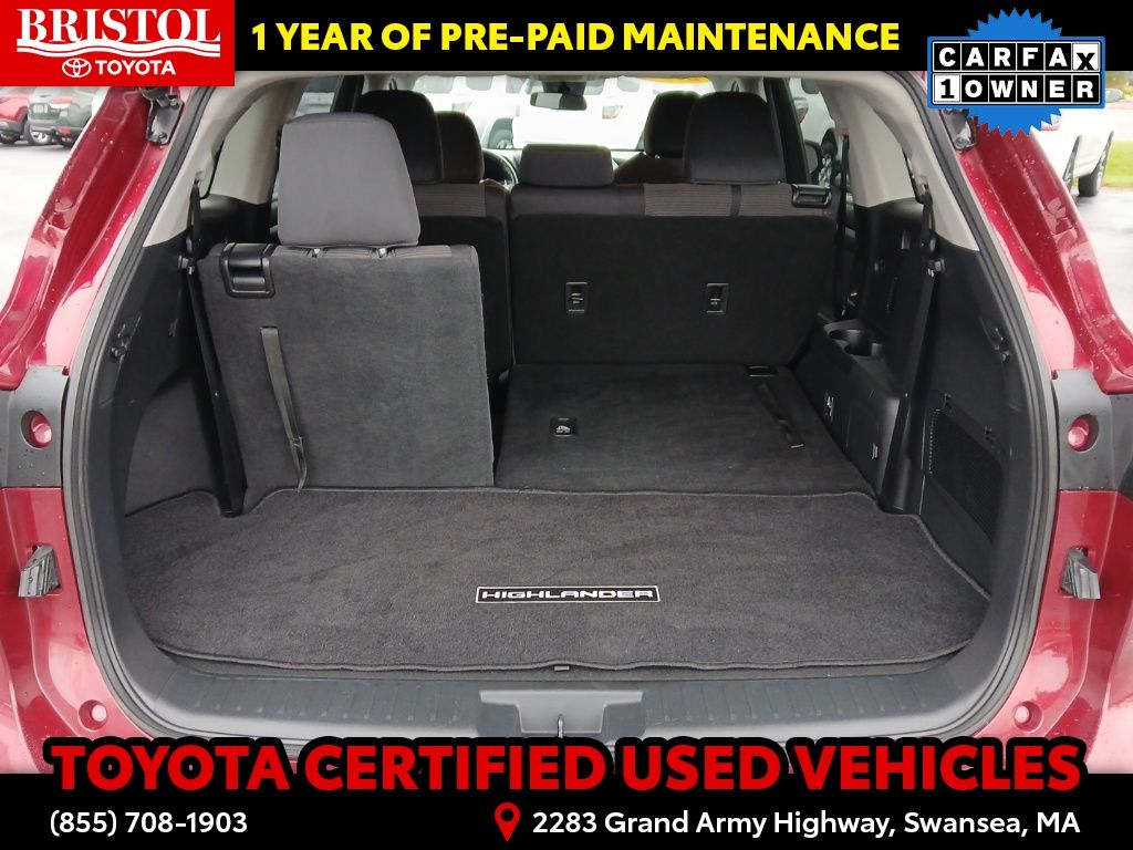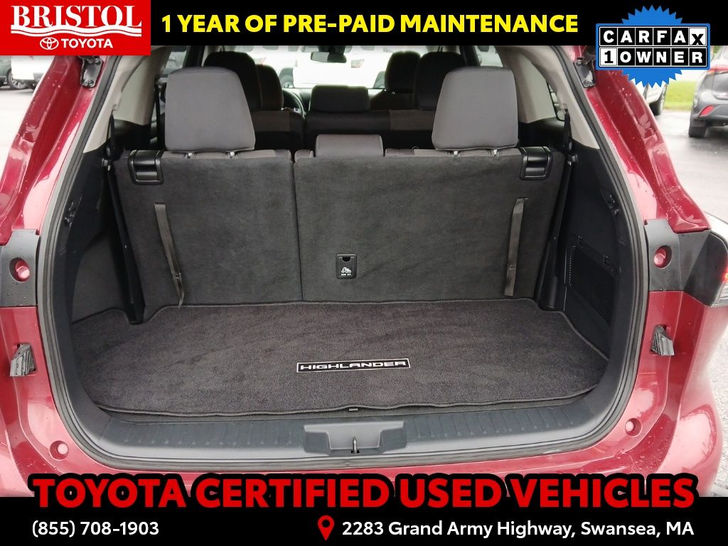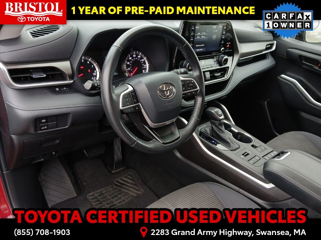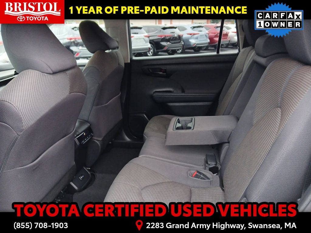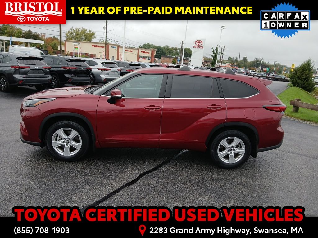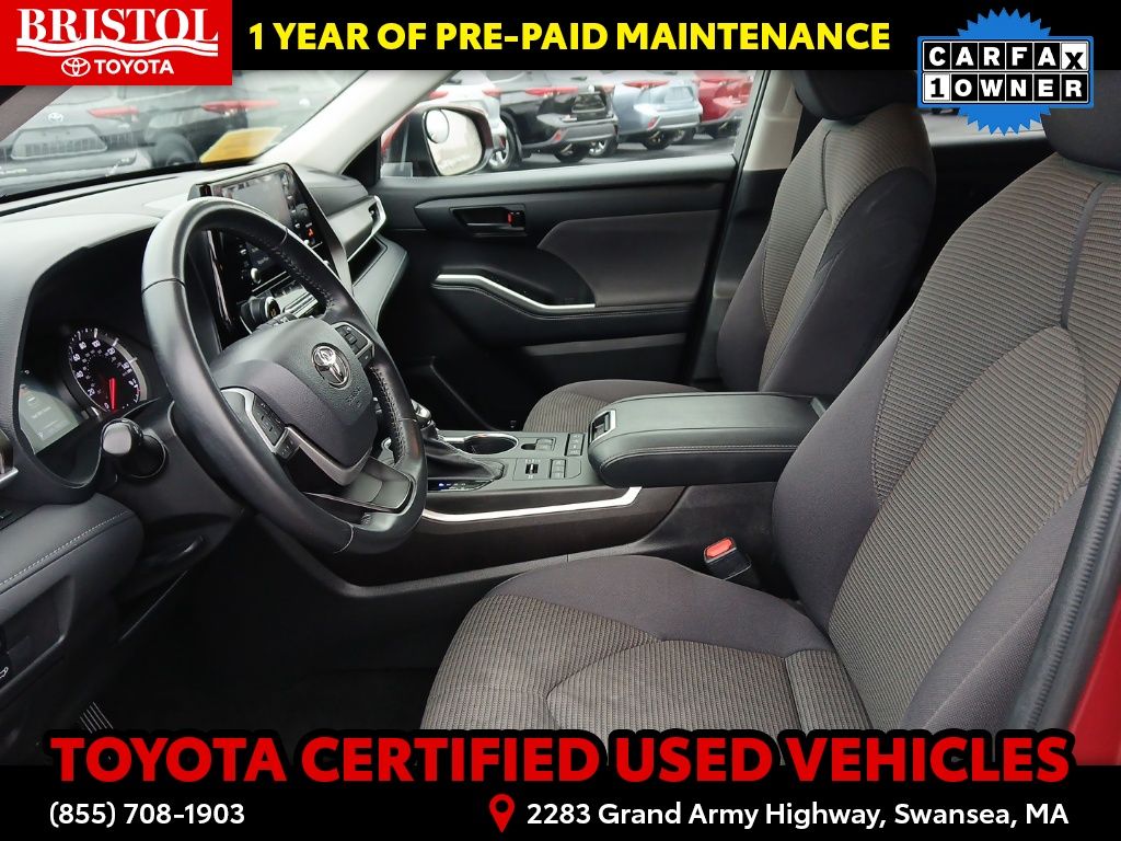TOYOTA CERTIFIED 7 Year/100,000 Mile Warranty!! CARFAX One-Owner. Clean CARFAX.Backup Camera, Bluetooth, Hands-Free, 3rd row seats: split-bench, Alloy wheels, Apple CarPlay/Android Auto, Exterior Parking Camera Rear, Illuminated entry, Power driver seat, Power Liftgate, Radio: Audio Plus, Steering wheel mounted audio controls.Toyota Silver Certified Details: * SILVER CERTIFIED Eligibility: Vehicles up to 10 Model Years Old & Between 60,000-125,000 Miles on Odometer; Outside Gold Eligibility Parameters, Limited Powertrain Warranty: 12-Month/12,000-Mile(2), 24-Hour Roadside Assistance: 12-Month/12,000-Mile(3), Extended Warranty Coverage (items 2 and 3 above) Transferable at No Cost For Added Resale Value, Quality Assurance Inspection: 136-Point Minimum, Free CARFAX Vehicle History Report, Warranty Honored at Over 1,400 Toyota Dealers in the Continental U.S. and Canada, Trade-Ins Accepted, Trouble-free Handling of Your Transaction; Including DMV PaperworkPlease call ahead today to make sure this vehicle is in stock! We're here to answer any questions. You can be confident that every used car we sell will be trouble free and reliable! Because if it's not, we won't sell it. Bristol Toyota is the only dealership in New England to have won Toyota's President's Award for over 35 consecutive years. Bristol Toyota..."Where friends send friends, Every Day!"Ruby Flare Pearl 2022 Toyota Highlander LE 4D Sport Utility AWD 8-Speed Automatic 3.5L V6 DOHC 20/27 City/Highway MPG