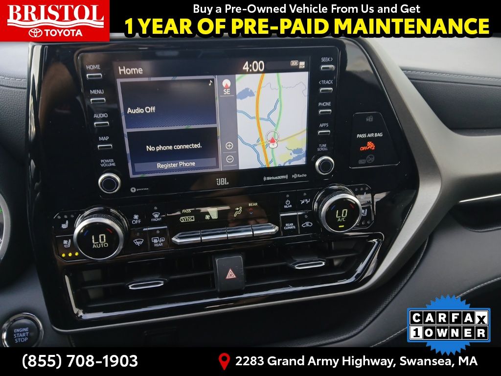 CARFAX One-Owner. Clean CARFAX.Please call ahead today to make sure this vehicle is in stock! We're here to answer any questions. You can be confident that every used car we sell will be trouble free and reliable! Because if it's not, we won't sell it. Bristol Toyota is the only dealership in New England to have won Toyota's President's Award for over 35 consecutive years. Bristol Toyota..."Where friends send friends, Every Day!"Moon Dust 2022 Toyota Highlander Limited 4D Sport Utility AWD 8-Speed Automatic 3.5L V6 DOHC 20/27 City/Highway MPG