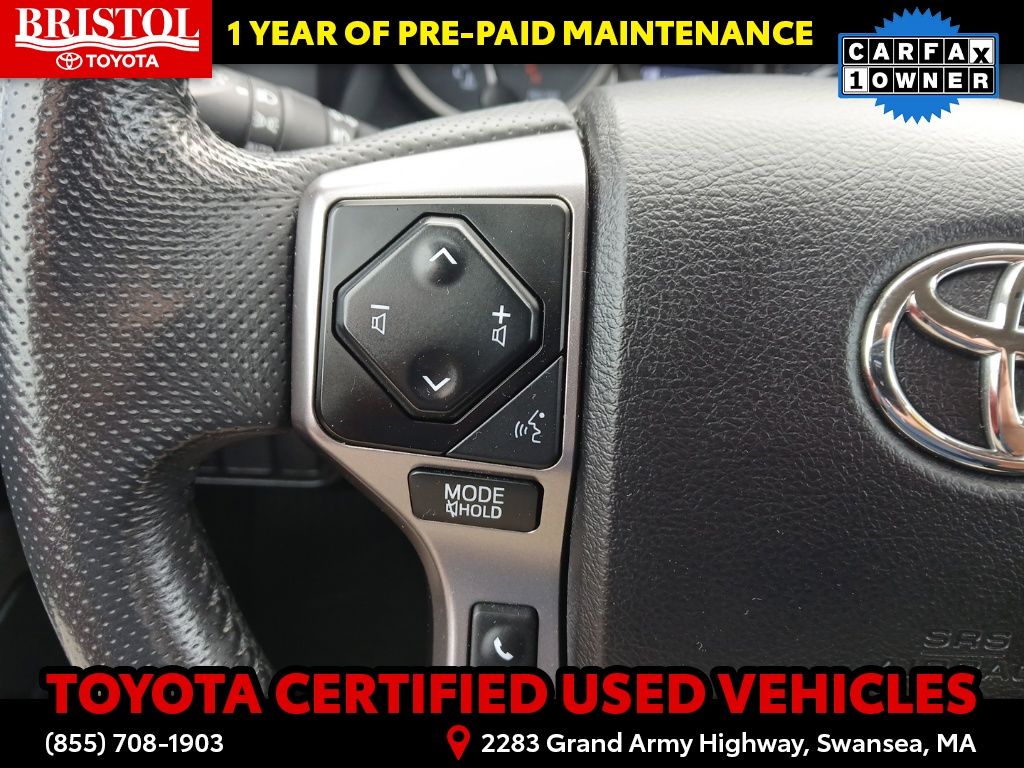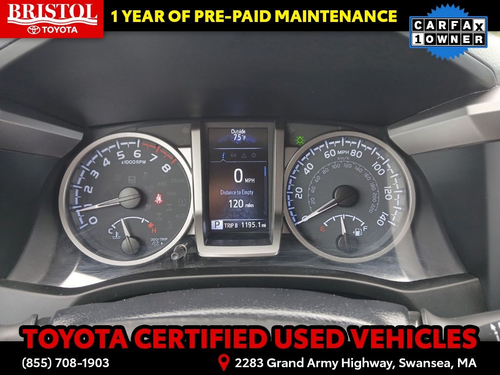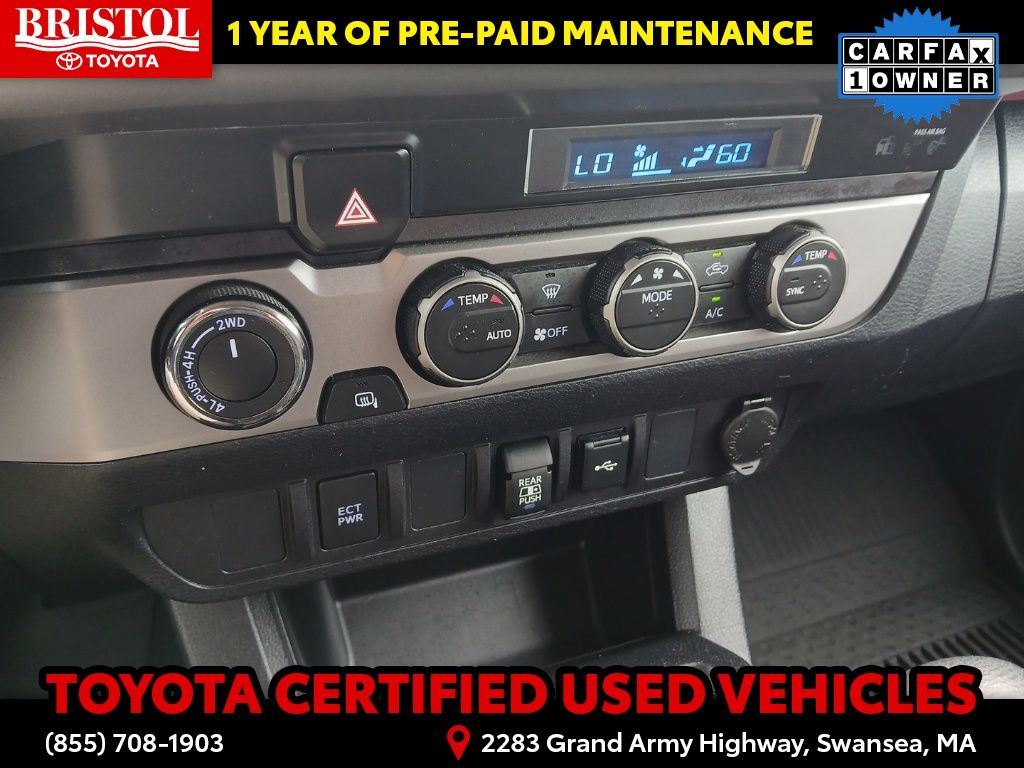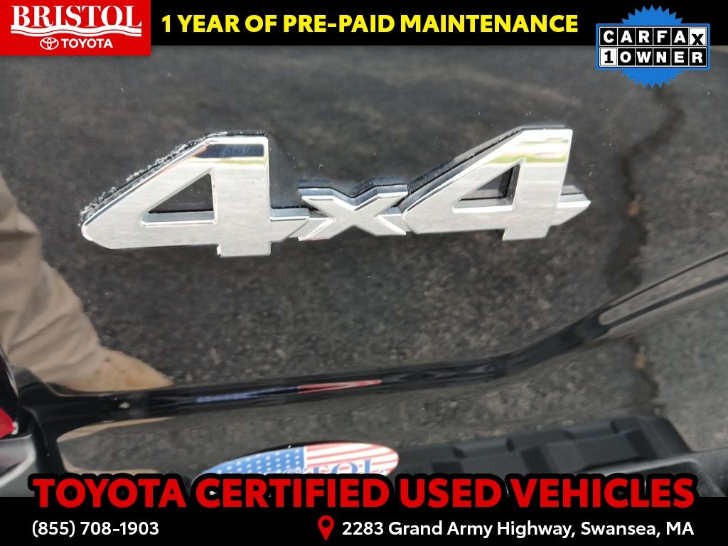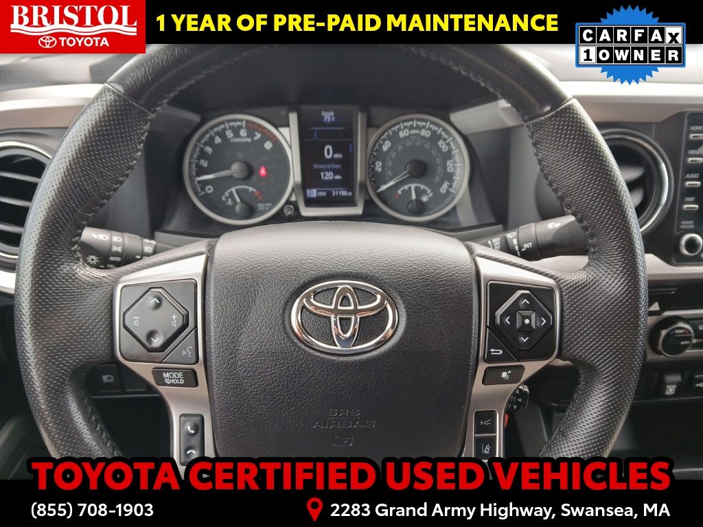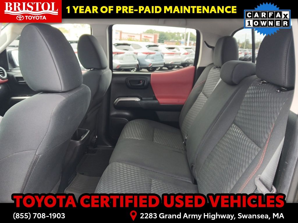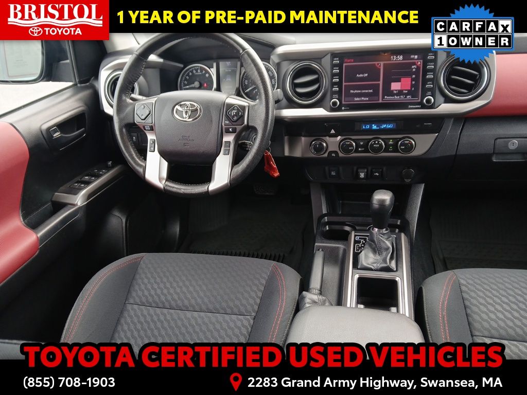 TOYOTA CERTIFIED 7 Year/100,000 Mile Warranty!! Odometer is 3203 miles below market average! CARFAX One-Owner. Clean CARFAX.Backup Camera, Bluetooth, Hands-Free, Alloy wheels, Apple CarPlay/Android Auto, Bar Gray Ring Chrome Front Grille, Color-Keyed Overfenders, Daytime Running Lamps, Exterior Parking Camera Rear, Front Fog Lamps, Illuminated entry, Power driver seat, Power Sliding Rear Window w/Privacy Glass, SR5 Package, Steering wheel mounted audio controls.Toyota Gold Certified Details: * 160 Point Inspection * Transferable Warranty * Vehicle History * Roadside Assistance * Warranty Deductible: $0 * Roadside Assistance for 7 Year / 100,000 Mile. Standard New-Car Financing Rates Available. Warranty honored at over 1,400 Toyota dealers in the continental U.S. & Canada. Trade-ins accepted. Trouble-free handling of your transaction, including DMV paperwork * Powertrain Limited Warranty: 84 Month/100,000 Mile (whichever comes first) from TCUV purchase date * Limited Warranty: 12 Month/12,000 Mile Limited Comprehensive Warranty: 12 Month/12,000 Mile (whichever comes first) from certified purchase datePlease call ahead today to make sure this vehicle is in stock! We're here to answer any questions. You can be confident that every used car we sell will be trouble free and reliable! Because if it's not, we won't sell it. Bristol Toyota is the only dealership in New England to have won Toyota's President's Award for over 35 consecutive years. Bristol Toyota..."Where friends send friends, Every Day!"Midnight Black Metallic 2022 Toyota Tacoma SR5 V6 4D Double Cab 4WD 6-Speed Automatic 3.5L V6 PDI DOHC 24V LEV3-ULEV70 278hp