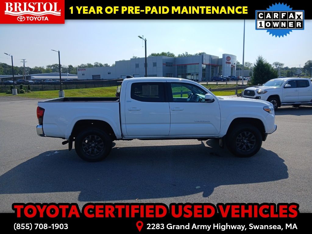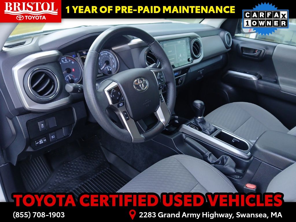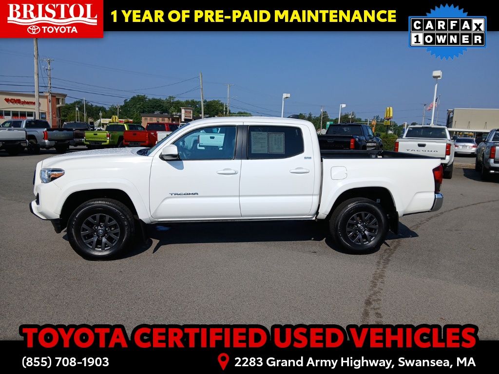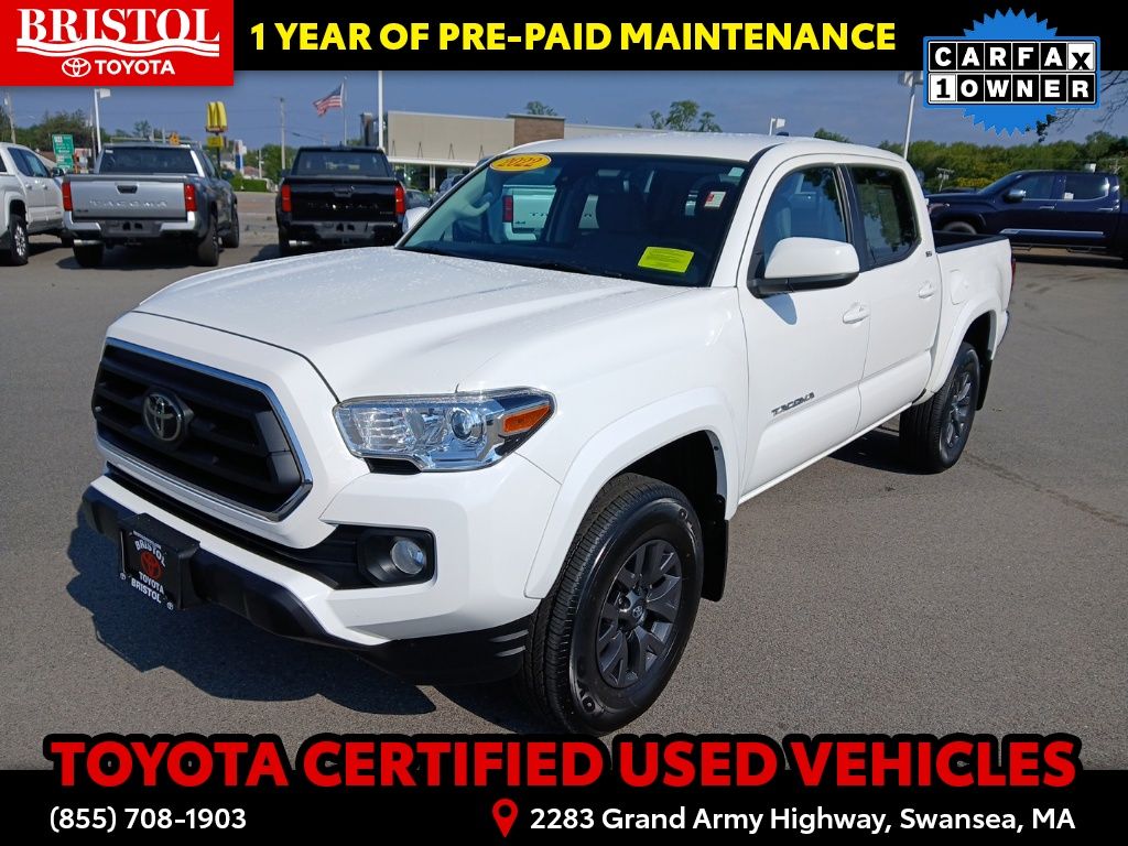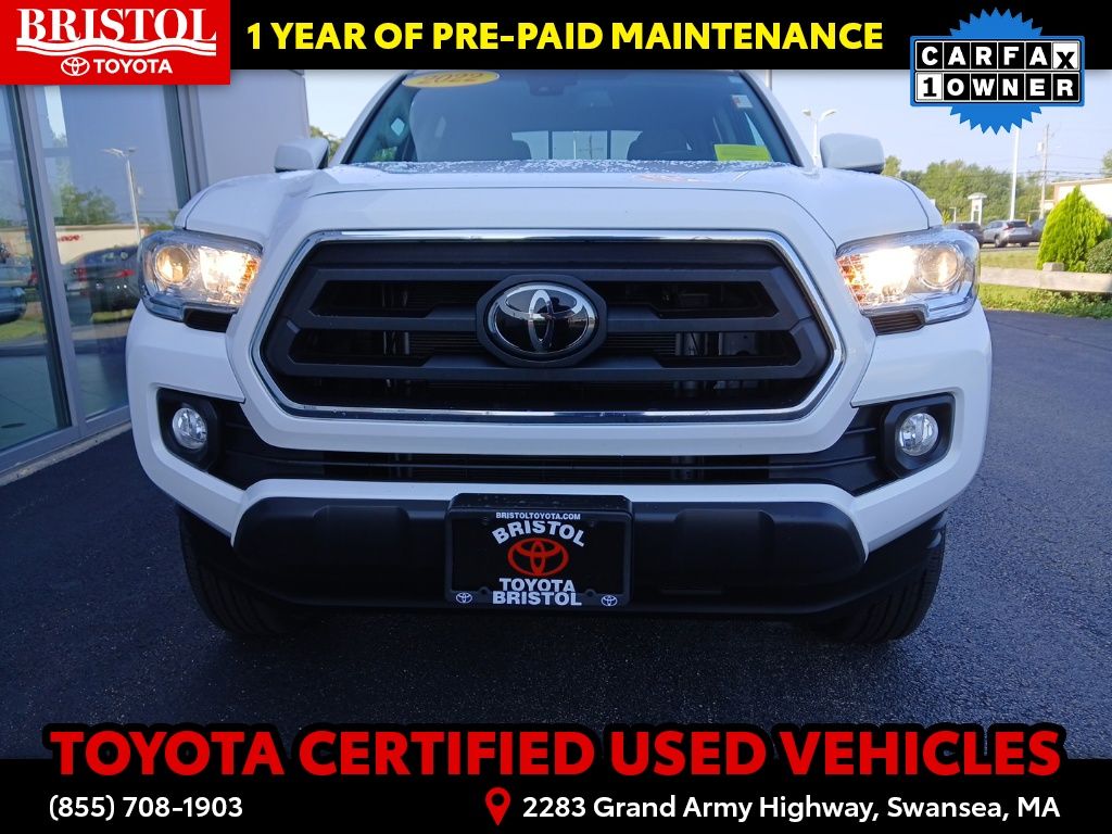 TOYOTA CERTIFIED 7 Year/100,000 Mile Warranty!! Odometer is 10054 miles below market average! CARFAX One-Owner. Clean CARFAX.Backup Camera, Bluetooth, Hands-Free, Alloy wheels, AM/FM radio: SiriusXM, Apple CarPlay/Android Auto, Bar Gray Ring Chrome Front Grille, Color-Keyed Overfenders, Daytime Running Lamps, Exterior Parking Camera Rear, Front Fog Lamps, Illuminated entry, Power door mirrors, Power Sliding Rear Window w/Privacy Glass, SR5 Package, Steering wheel mounted audio controls.Toyota Gold Certified Details: * Warranty Deductible: $0 * Limited Warranty: 12 Month/12,000 Mile Limited Comprehensive Warranty: 12 Month/12,000 Mile (whichever comes first) from certified purchase date * Transferable Warranty * Roadside Assistance * Vehicle History * Powertrain Limited Warranty: 84 Month/100,000 Mile (whichever comes first) from TCUV purchase date * Roadside Assistance for 7 Year / 100,000 Mile. Standard New-Car Financing Rates Available. Warranty honored at over 1,400 Toyota dealers in the continental U.S. & Canada. Trade-ins accepted. Trouble-free handling of your transaction, including DMV paperwork * 160 Point InspectionPlease call ahead today to make sure this vehicle is in stock! We're here to answer any questions. You can be confident that every used car we sell will be trouble free and reliable! Because if it's not, we won't sell it. Bristol Toyota is the only dealership in New England to have won Toyota's President's Award for over 35 consecutive years. Bristol Toyota..."Where friends send friends, Every Day!"White 2022 Toyota Tacoma SR5 V6 4D Double Cab 4WD 6-Speed Automatic 3.5L V6 PDI DOHC 24V LEV3-ULEV70 278hp
