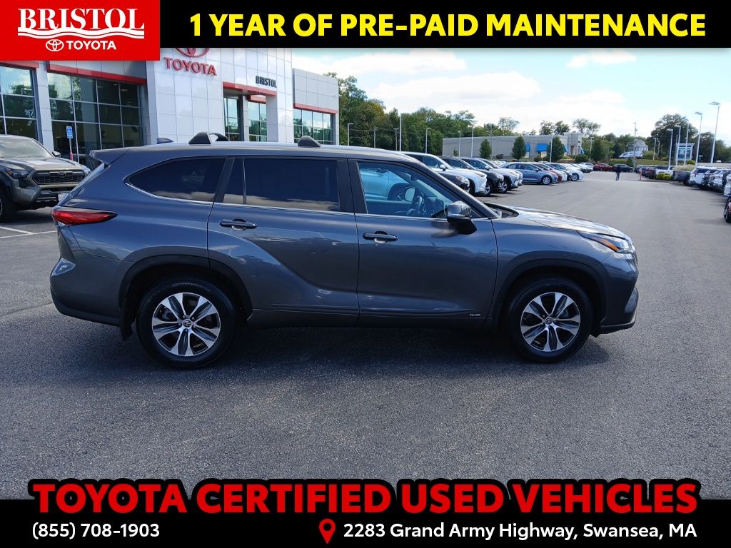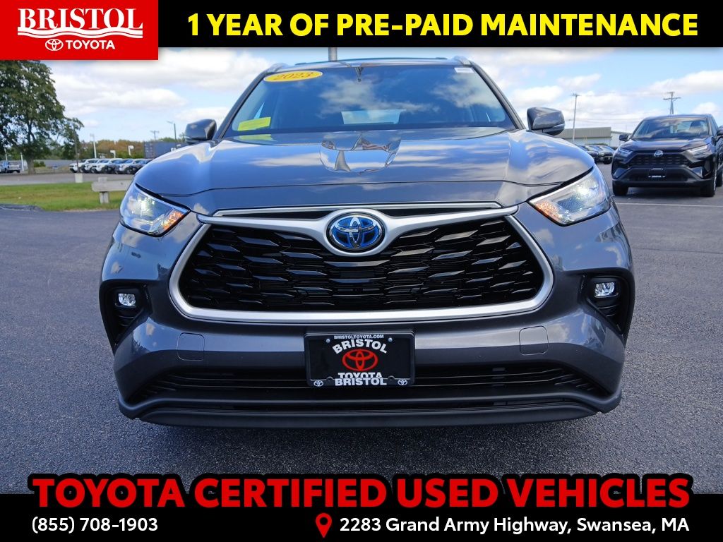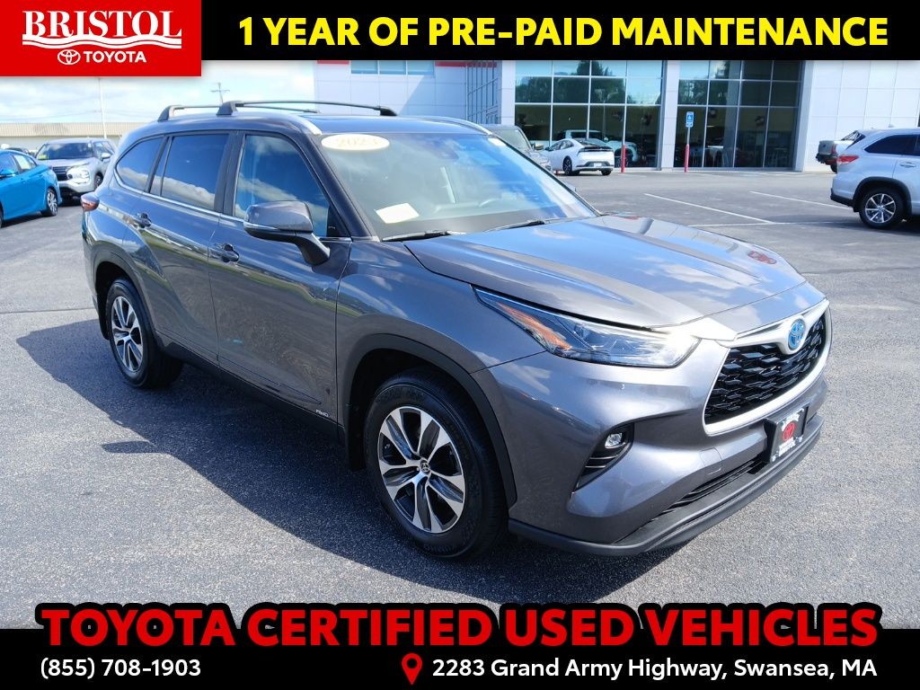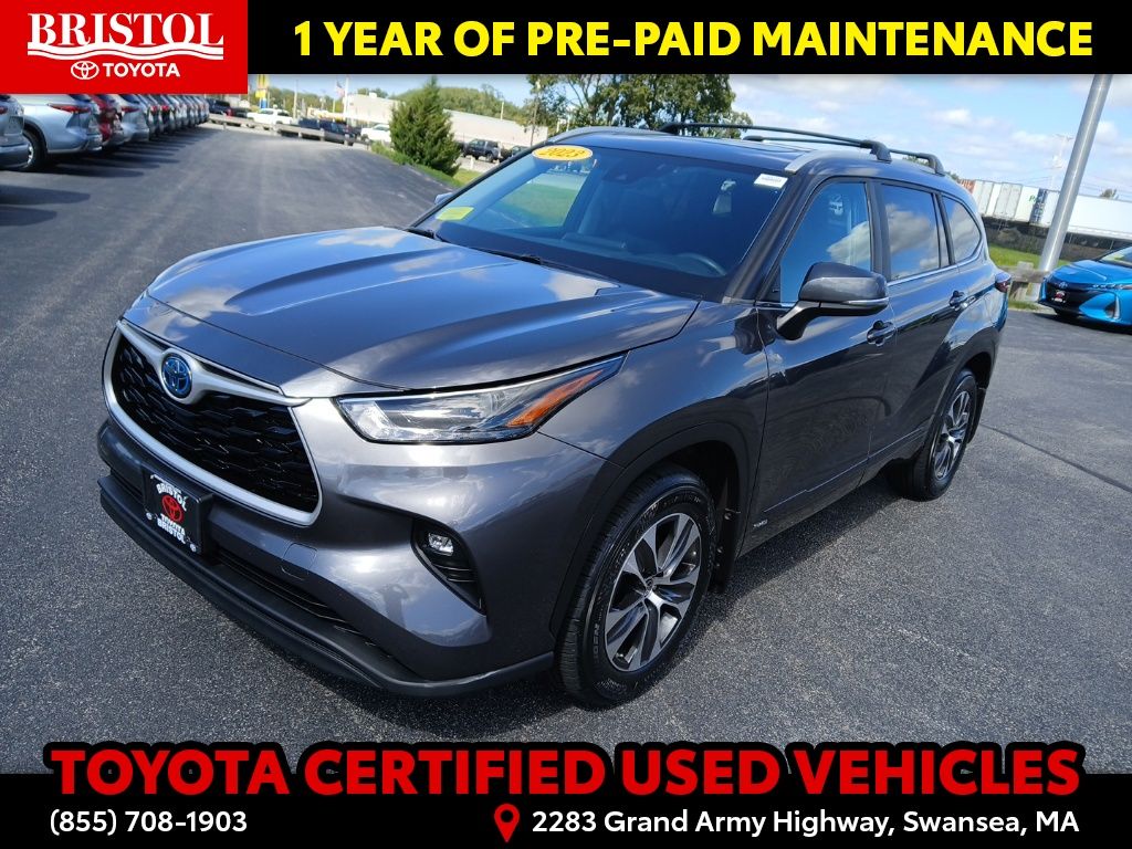 TOYOTA CERTIFIED 7 Year/100,000 Mile Warranty!! Odometer is 10119 miles below market average! Clean CARFAX.Brand New Tires!, Backup Camera, Bluetooth, Hands-Free, 3rd row seats: split-bench, Alloy wheels, Apple CarPlay/Android Auto, Exterior Parking Camera Rear, Heated door mirrors, Heated Front Bucket Seats, Illuminated entry, Power door mirrors, Power driver seat, Power Liftgate, Power moonroof, Radio: 8" Toyota Audio Multimedia, Steering wheel mounted audio controls.Toyota Gold Certified Details: * Roadside Assistance * Limited Warranty: 12 Month/12,000 Mile Limited Comprehensive Warranty: 12 Month/12,000 Mile (whichever comes first) from certified purchase date * Vehicle History * Roadside Assistance for 7 Year / 100,000 Mile. Standard New-Car Financing Rates Available. Warranty honored at over 1,400 Toyota dealers in the continental U.S. & Canada. Trade-ins accepted. Trouble-free handling of your transaction, including DMV paperwork * 160 Point Inspection * Powertrain Limited Warranty: 84 Month/100,000 Mile (whichever comes first) from TCUV purchase date * Warranty Deductible: $0 * Transferable WarrantyPlease call ahead today to make sure this vehicle is in stock! We're here to answer any questions. You can be confident that every used car we sell will be trouble free and reliable! Because if it's not, we won't sell it. Bristol Toyota is the only dealership in New England to have won Toyota's President's Award for over 35 consecutive years. Bristol Toyota..."Where friends send friends, Every Day!"Magnetic Gray Metallic 2023 Toyota Highlander Hybrid XLE 4D Sport Utility AWD eCVT 2.5L I4 PDI Hybrid DOHC 16V LEV3-SULEV30 35/35 City/Highway MPG