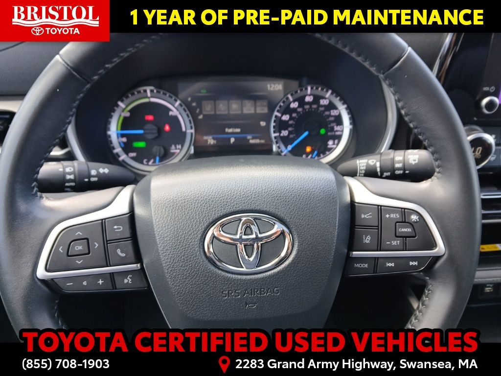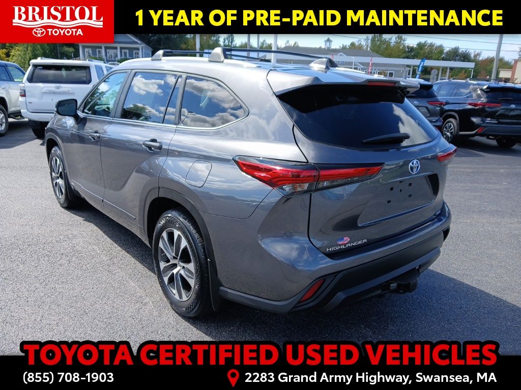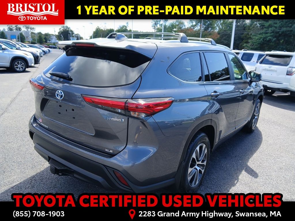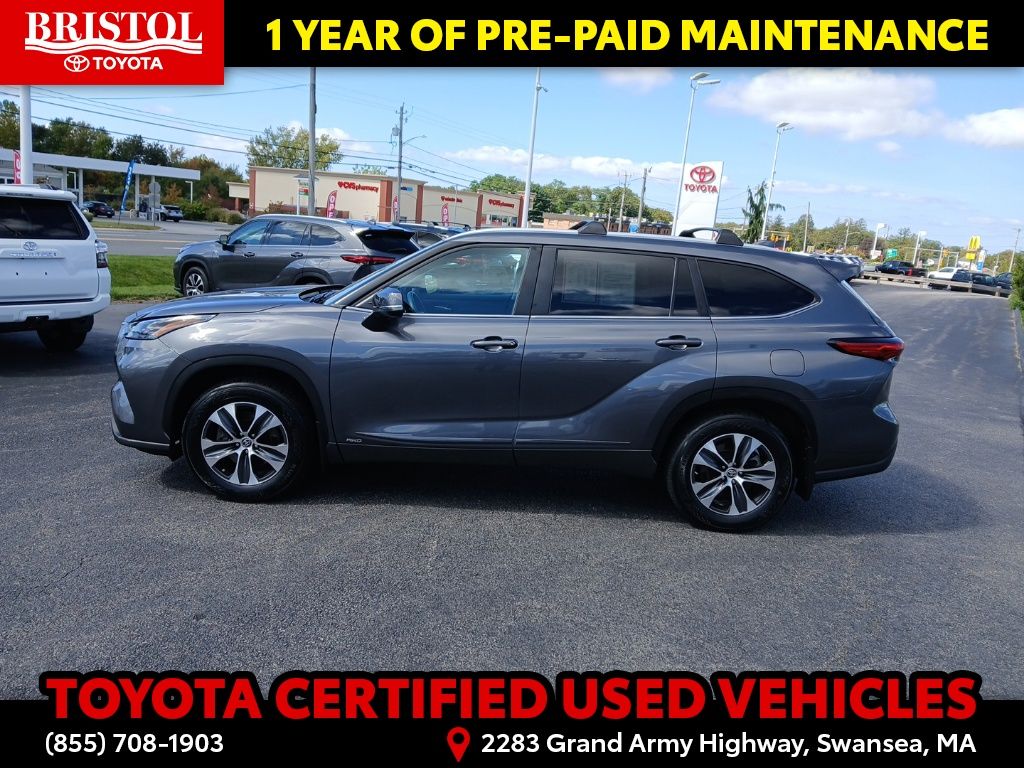 TOYOTA CERTIFIED 7 Year/100,000 Mile Warranty!! Odometer is 10119 miles below market average! Clean CARFAX.Brand New Tires!, Backup Camera, Bluetooth, Hands-Free, 3rd row seats: split-bench, Alloy wheels, Apple CarPlay/Android Auto, Exterior Parking Camera Rear, Heated door mirrors, Heated Front Bucket Seats, Illuminated entry, Power door mirrors, Power driver seat, Power Liftgate, Power moonroof, Radio: 8" Toyota Audio Multimedia, Steering wheel mounted audio controls.Toyota Gold Certified Details: * Roadside Assistance * Limited Warranty: 12 Month/12,000 Mile Limited Comprehensive Warranty: 12 Month/12,000 Mile (whichever comes first) from certified purchase date * Vehicle History * Roadside Assistance for 7 Year / 100,000 Mile. Standard New-Car Financing Rates Available. Warranty honored at over 1,400 Toyota dealers in the continental U.S. & Canada. Trade-ins accepted. Trouble-free handling of your transaction, including DMV paperwork * 160 Point Inspection * Powertrain Limited Warranty: 84 Month/100,000 Mile (whichever comes first) from TCUV purchase date * Warranty Deductible: $0 * Transferable WarrantyPlease call ahead today to make sure this vehicle is in stock! We're here to answer any questions. You can be confident that every used car we sell will be trouble free and reliable! Because if it's not, we won't sell it. Bristol Toyota is the only dealership in New England to have won Toyota's President's Award for over 35 consecutive years. Bristol Toyota..."Where friends send friends, Every Day!"Magnetic Gray Metallic 2023 Toyota Highlander Hybrid XLE 4D Sport Utility AWD eCVT 2.5L I4 PDI Hybrid DOHC 16V LEV3-SULEV30 35/35 City/Highway MPG