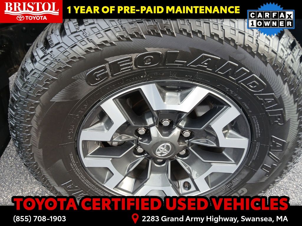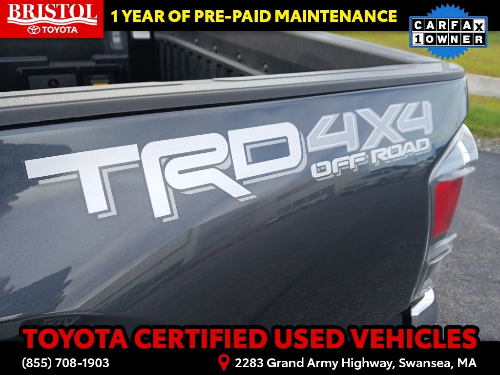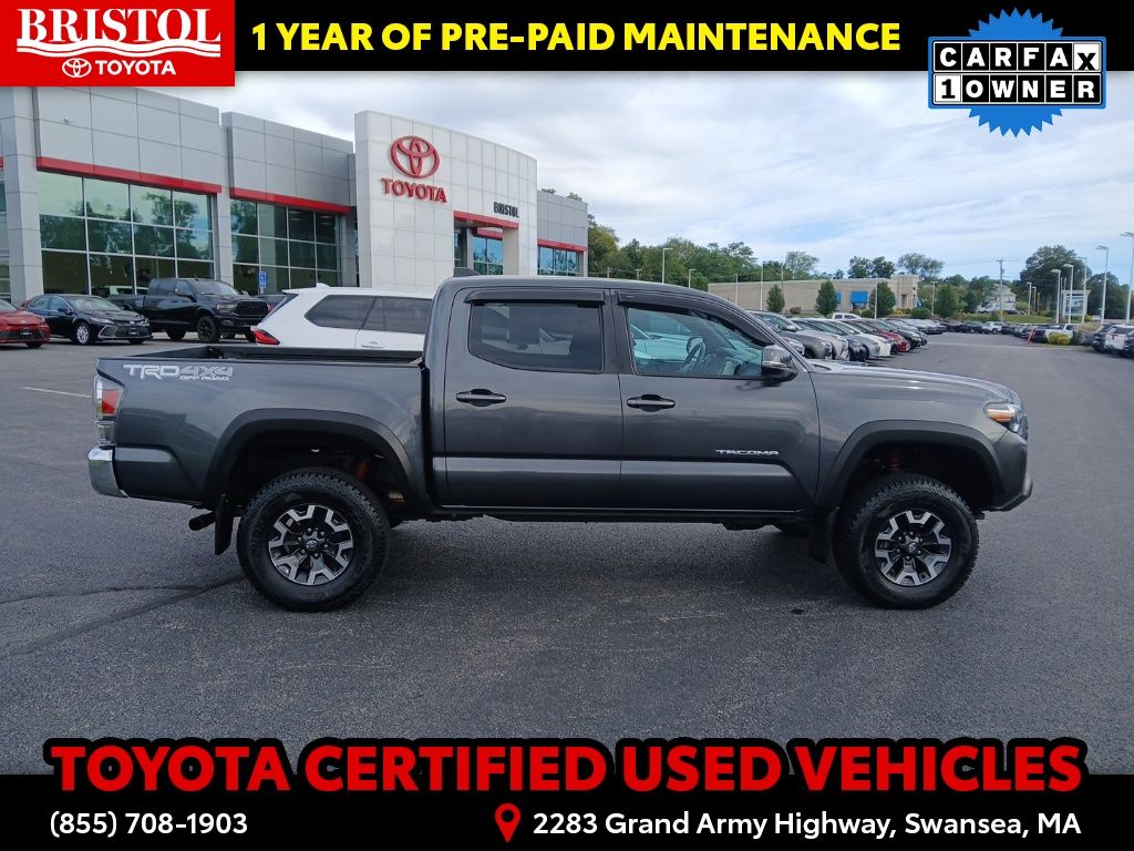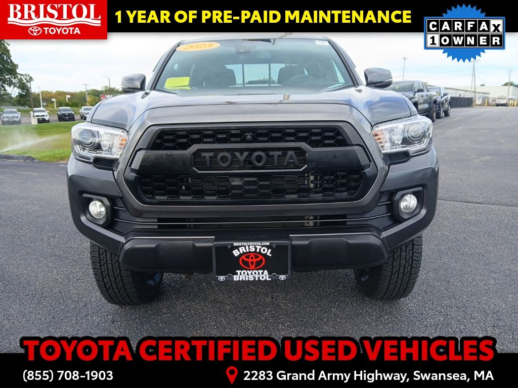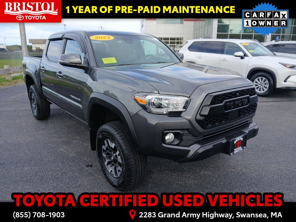 CARFAX One-Owner. Clean CARFAX.Toyota Gold Certified Details: * Limited Warranty: 12 Month/12,000 Mile Limited Comprehensive Warranty: 12 Month/12,000 Mile (whichever comes first) from certified purchase date * Warranty Deductible: $0 * Powertrain Limited Warranty: 84 Month/100,000 Mile (whichever comes first) from TCUV purchase date * 160 Point Inspection * Vehicle History * Transferable Warranty * Roadside Assistance * Roadside Assistance for 7 Year / 100,000 Mile. Standard New-Car Financing Rates Available. Warranty honored at over 1,400 Toyota dealers in the continental U.S. & Canada. Trade-ins accepted. Trouble-free handling of your transaction, including DMV paperworkPlease call ahead today to make sure this vehicle is in stock! We're here to answer any questions. You can be confident that every used car we sell will be trouble free and reliable! Because if it's not, we won't sell it. Bristol Toyota is the only dealership in New England to have won Toyota's President's Award for over 35 consecutive years. Bristol Toyota..."Where friends send friends, Every Day!"Magnetic Gray Metallic 2023 Toyota Tacoma TRD Off-Road V6 4D Double Cab 4WD 6-Speed Automatic 3.5L V6