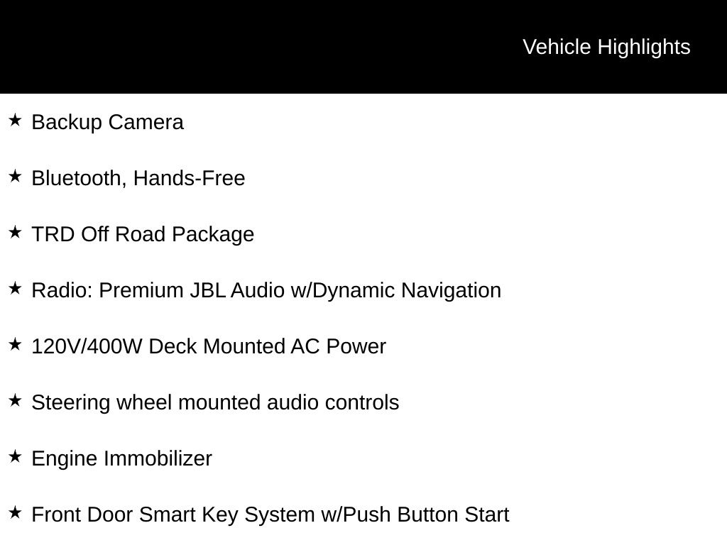 Packed with an impressive array of features, the Tacoma TRD Off-Road V6 is designed to elevate your driving experience. Highlights include: