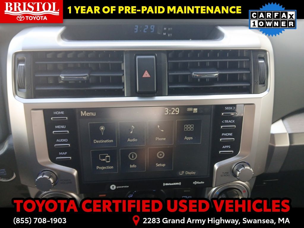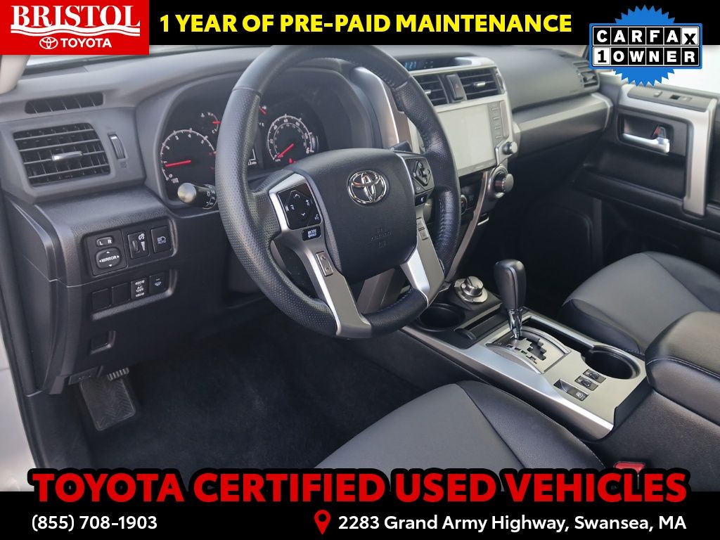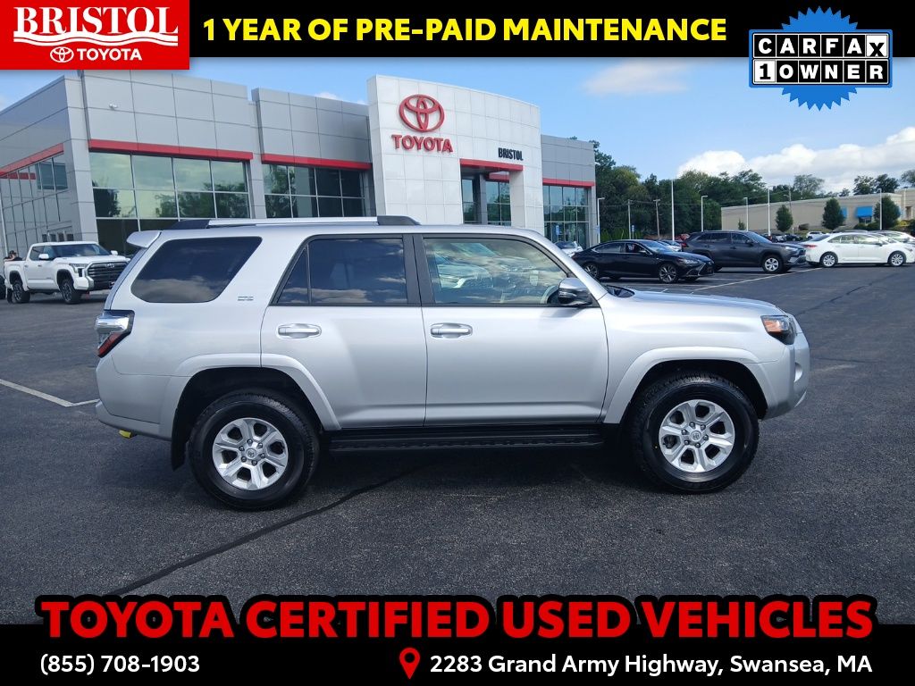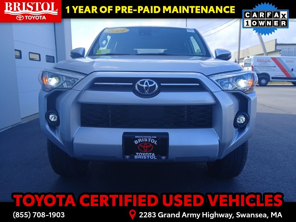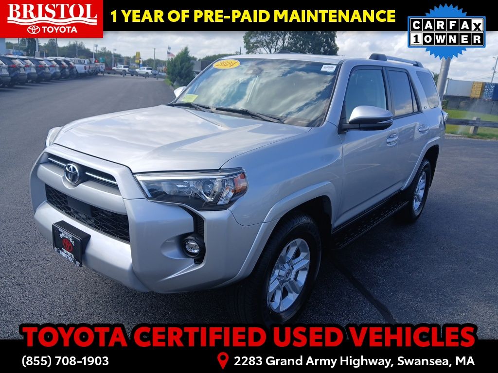 TOYOTA CERTIFIED 7 Year/100,000 Mile Warranty!! Odometer is 3373 miles below market average! CARFAX One-Owner. Clean CARFAX.Backup Camera, Bluetooth, Hands-Free, Alloy wheels, Apple CarPlay/Android Auto, Exterior Parking Camera Rear, Garage Door Opener, Heated door mirrors, Heated Front Bucket Seats, Heated Outside Rear-View Mirrors, Heated steering wheel, Illuminated entry, Navigation System, Power door mirrors, Rigid Running Boards, SR5 Premium Package, Steering wheel mounted audio controls.Toyota Gold Certified Details: * Roadside Assistance for 7 Year / 100,000 Mile. Standard New-Car Financing Rates Available. Warranty honored at over 1,400 Toyota dealers in the continental U.S. & Canada. Trade-ins accepted. Trouble-free handling of your transaction, including DMV paperwork * Powertrain Limited Warranty: 84 Month/100,000 Mile (whichever comes first) from TCUV purchase date * Transferable Warranty * Roadside Assistance * Vehicle History * Warranty Deductible: $0 * 160 Point Inspection * Limited Warranty: 12 Month/12,000 Mile Limited Comprehensive Warranty: 12 Month/12,000 Mile (whichever comes first) from certified purchase datePlease call ahead today to make sure this vehicle is in stock! We're here to answer any questions. You can be confident that every used car we sell will be trouble free and reliable! Because if it's not, we won't sell it. Bristol Toyota is the only dealership in New England to have won Toyota's President's Award for over 35 consecutive years. Bristol Toyota..."Where friends send friends, Every Day!"Classic Silver 2024 Toyota 4Runner SR5 Premium 4D Sport Utility 4WD 5-Speed with ECT 4.0L V6 DOHC 24V