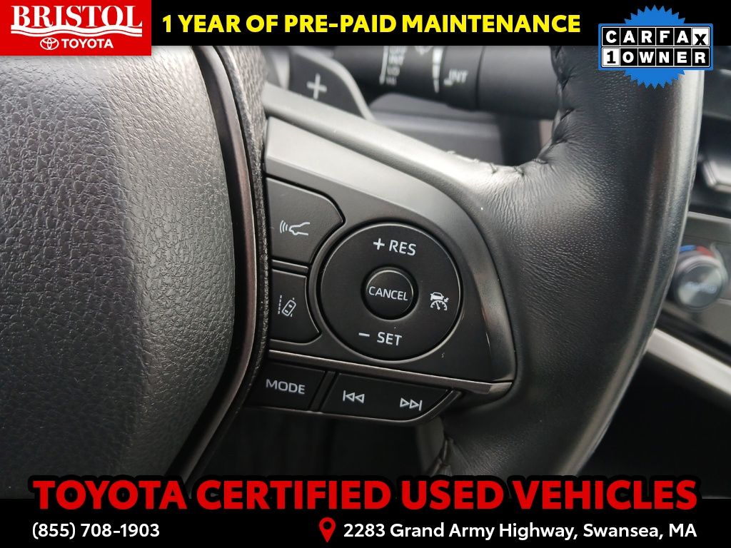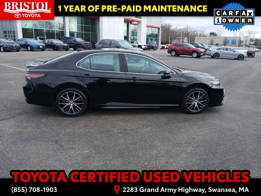 As a Toyota Certified Used Vehicle, this Camry SE has undergone a rigorous 160-point inspection, ensuring it meets the highest standards of quality and reliability. You'll also enjoy the peace of mind that comes with a 12-month/12,000-mile Limited Comprehensive Warranty, an 84-month/100,000-mile Powertrain Limited Warranty, and 7 years/100,000 miles of Roadside Assistance.