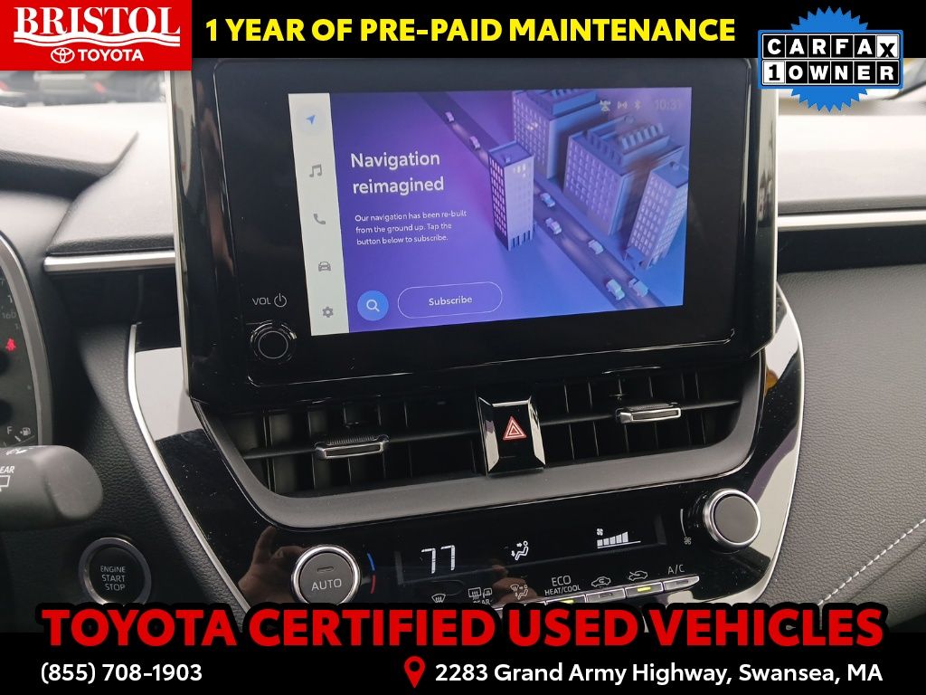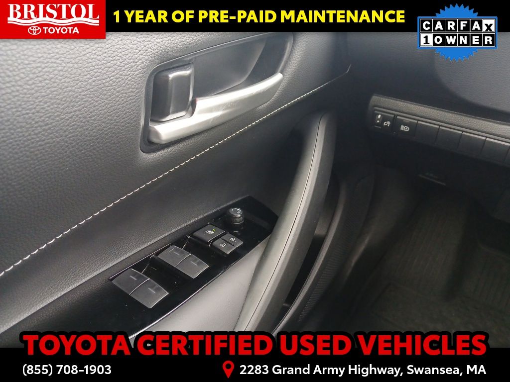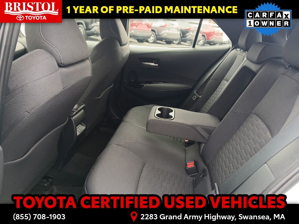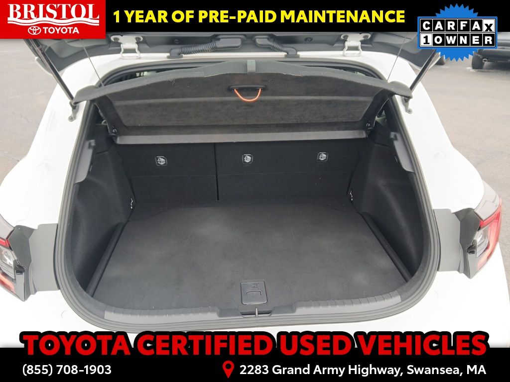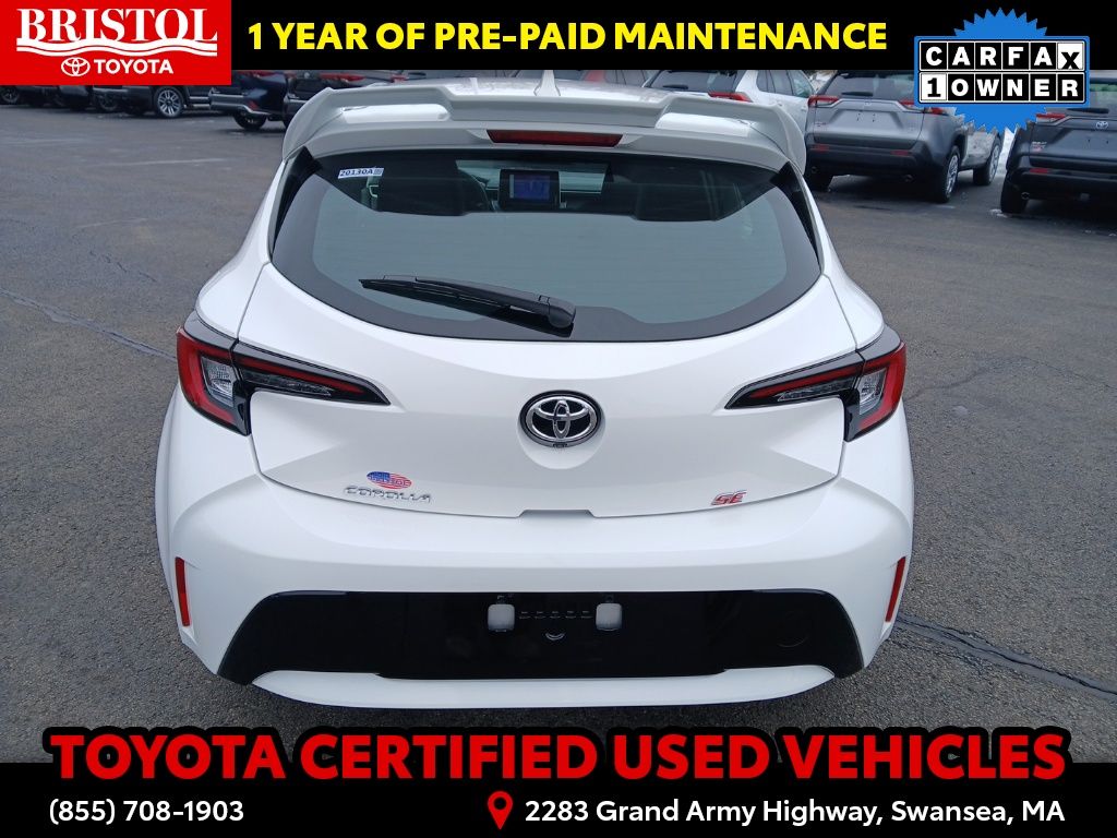 As a Toyota Gold Certified pre-owned vehicle, this Corolla Hatchback SE has undergone a rigorous 160-point inspection and comes with a comprehensive warranty package. Enjoy the peace of mind of 7 years/100,000 miles of Roadside Assistance, a 12-month/12,000-mile Limited Comprehensive Warranty, and an 84-month/100,000-mile Powertrain Limited Warranty. This exceptional coverage, combined with the vehicle's impeccable history and condition, ensures you can drive with confidence.