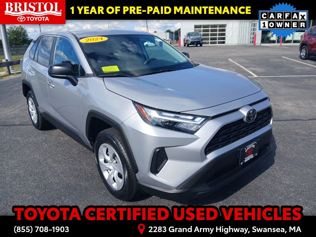 TOYOTA CERTIFIED 7 Year/100,000 Mile Warranty!! CARFAX One-Owner. Clean CARFAX.Backup Camera, Bluetooth, Hands-Free, Exterior Parking Camera Rear, Illuminated entry, Power door mirrors, Radio: AM/FM/XM Audio System, Steering wheel mounted audio controls.Toyota Gold Certified Details: * Roadside Assistance * Transferable Warranty * Roadside Assistance for 7 Year / 100,000 Mile. Standard New-Car Financing Rates Available. Warranty honored at over 1,400 Toyota dealers in the continental U.S. & Canada. Trade-ins accepted. Trouble-free handling of your transaction, including DMV paperwork * Limited Warranty: 12 Month/12,000 Mile Limited Comprehensive Warranty: 12 Month/12,000 Mile (whichever comes first) from certified purchase date * Powertrain Limited Warranty: 84 Month/100,000 Mile (whichever comes first) from TCUV purchase date * 160 Point Inspection * Warranty Deductible: $0 * Vehicle HistoryPlease call ahead today to make sure this vehicle is in stock! We're here to answer any questions. You can be confident that every used car we sell will be trouble free and reliable! Because if it's not, we won't sell it. Bristol Toyota is the only dealership in New England to have won Toyota's President's Award for over 35 consecutive years. Bristol Toyota..."Where friends send friends, Every Day!"Silver Sky Metallic 2024 Toyota RAV4 LE 4D Sport Utility AWD 8-Speed Automatic 2.5L 4-Cylinder DOHC Dual VVT-i 27/34 City/Highway MPG